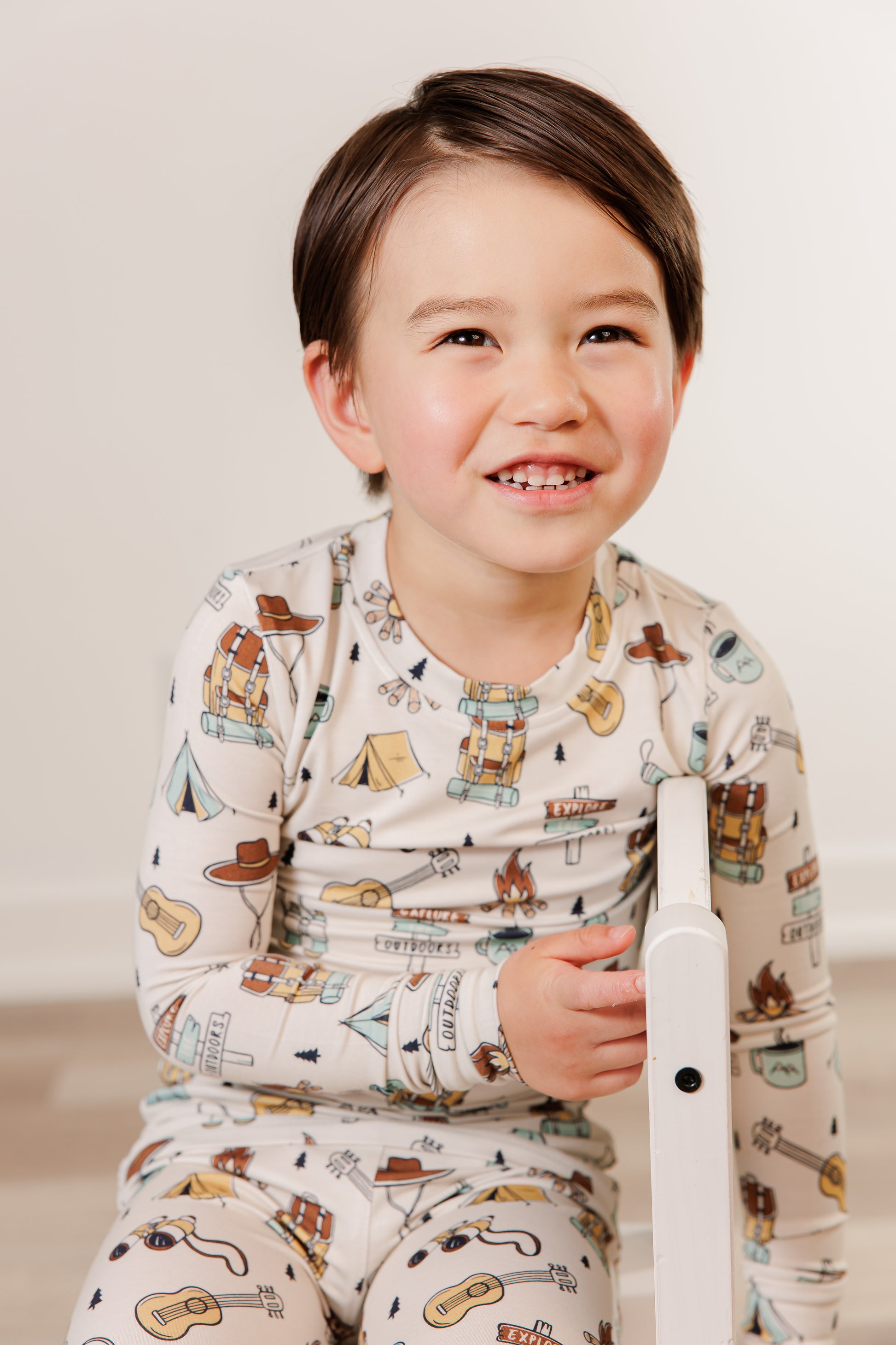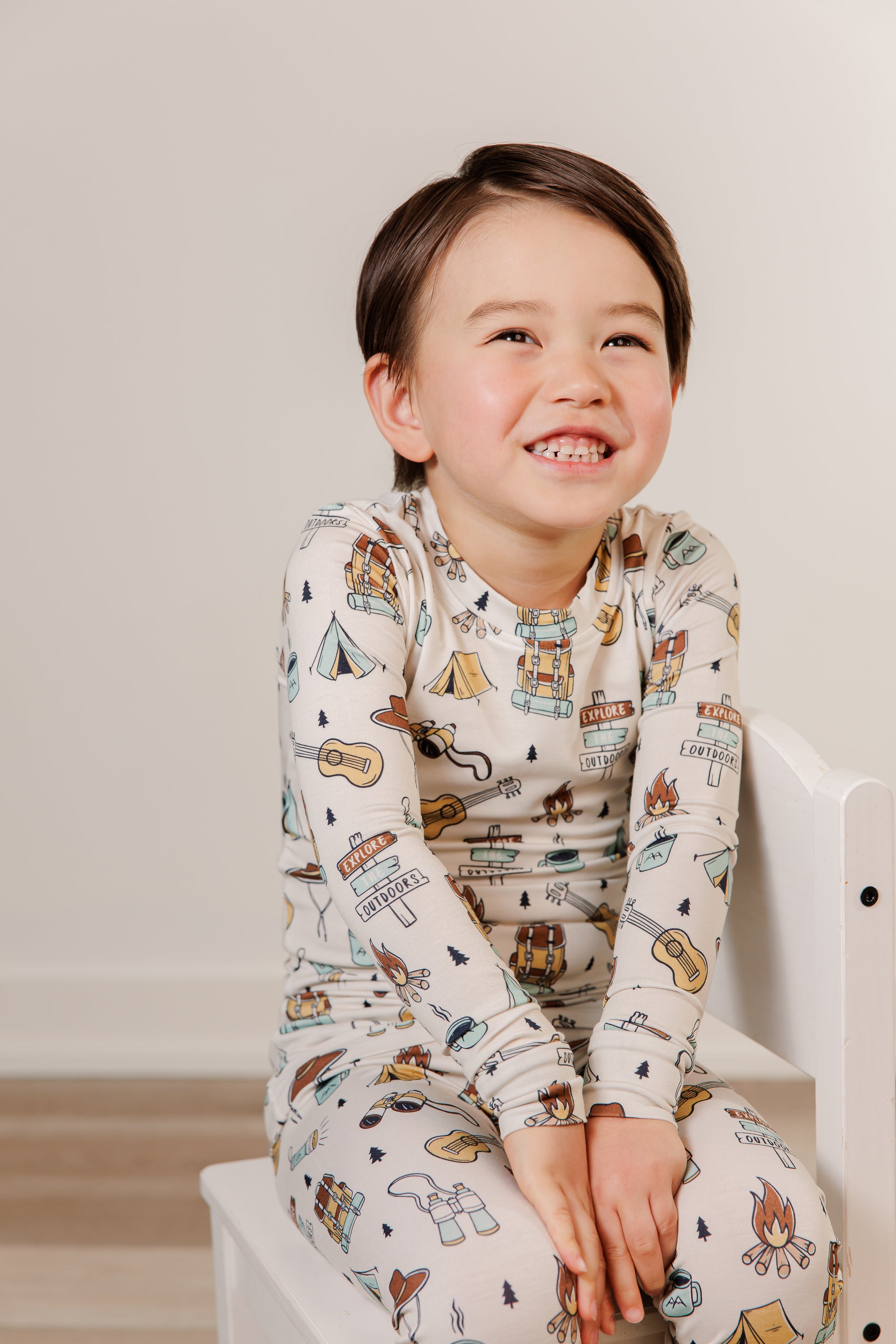 This one’s for the kid who thinks every stick is a hiking pole. With binoculars, tents, and adventure all over, it’s basically a wearable permission slip for imagination. Just add snacks, stories, and a comfy couch campsite.