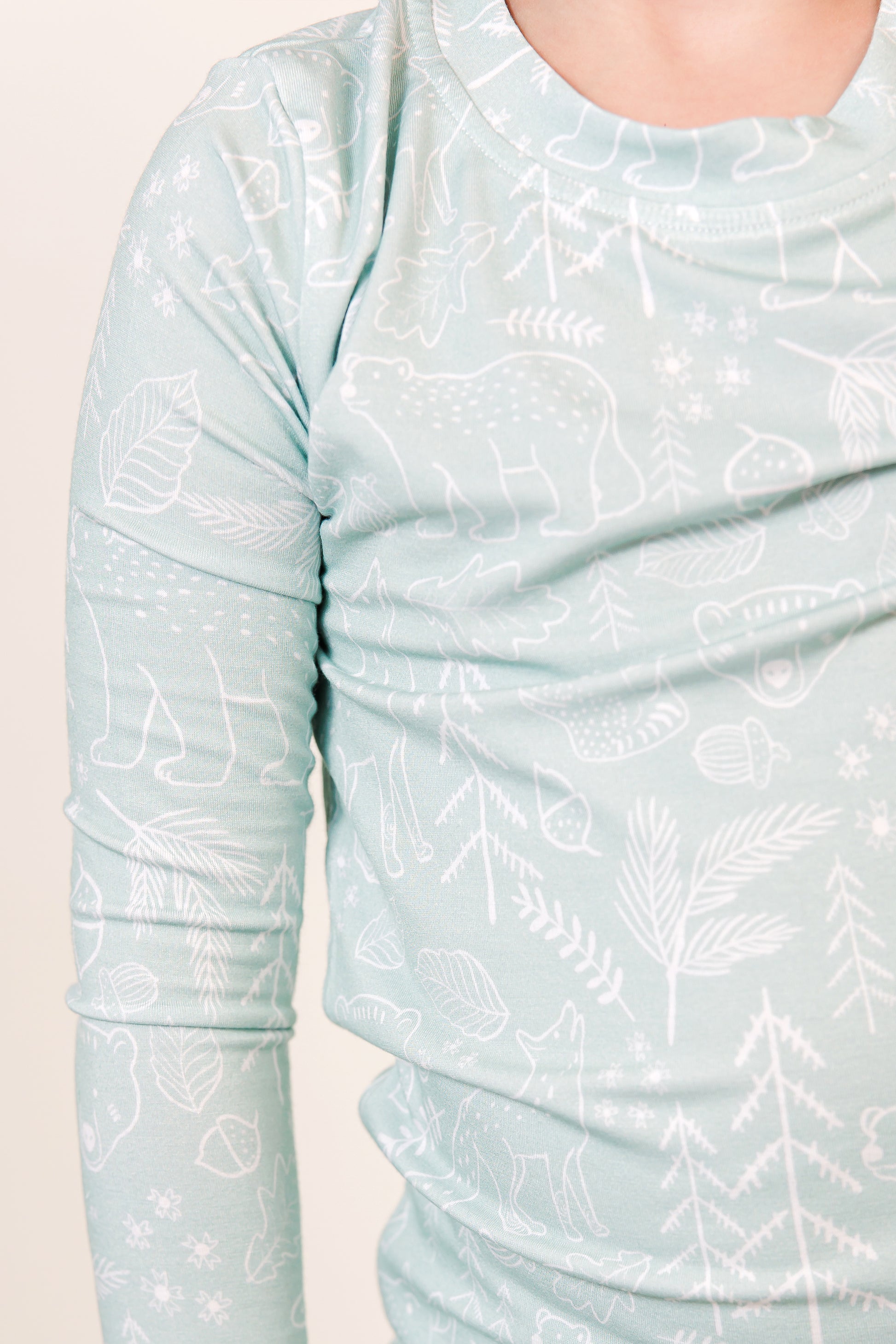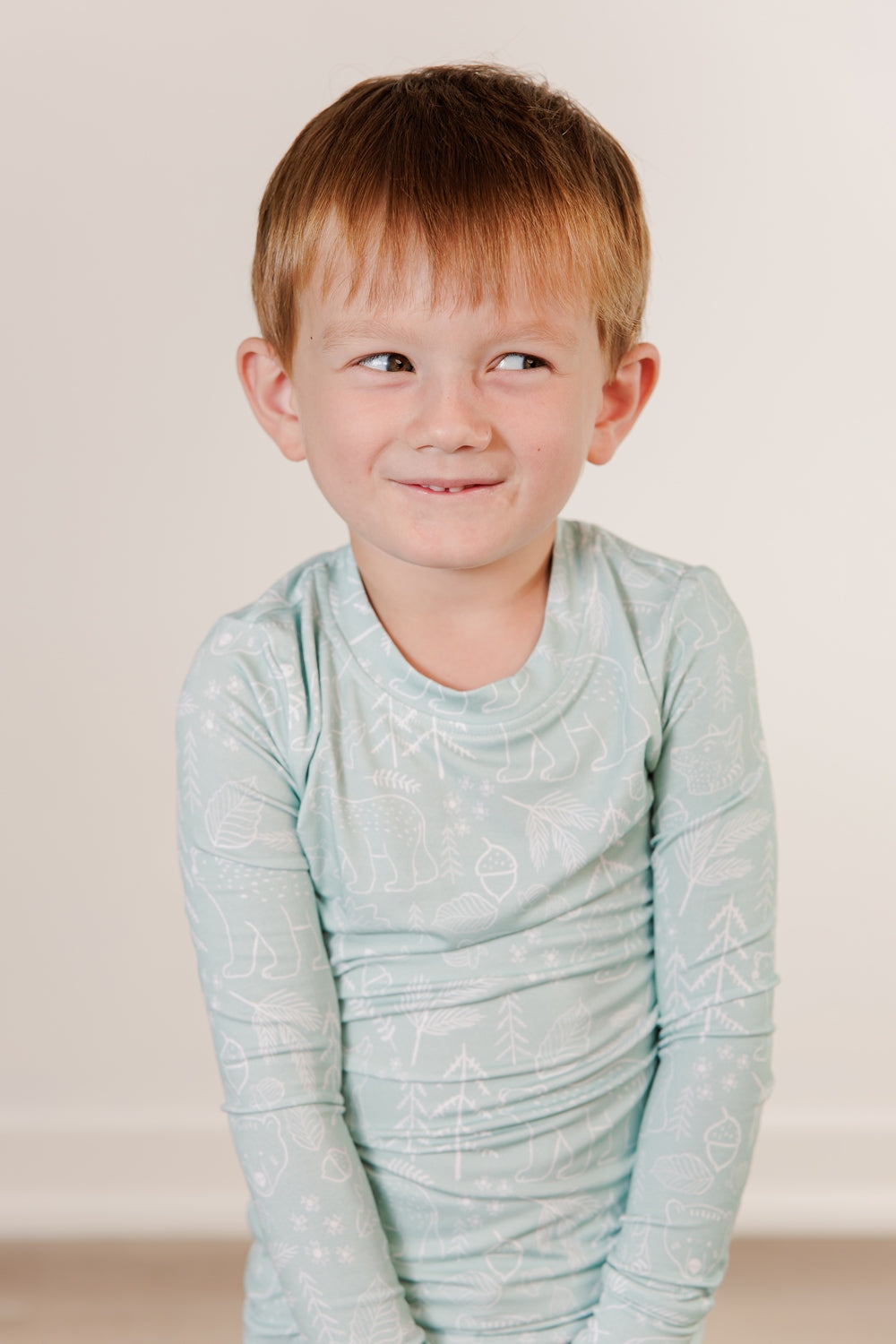 Your little wild thing just found their perfect uniform. This cozy woodland print is equal parts peaceful and playful, with forest critters, leafy vibes, and just the right amount of outdoorsy charm. No bug spray required.